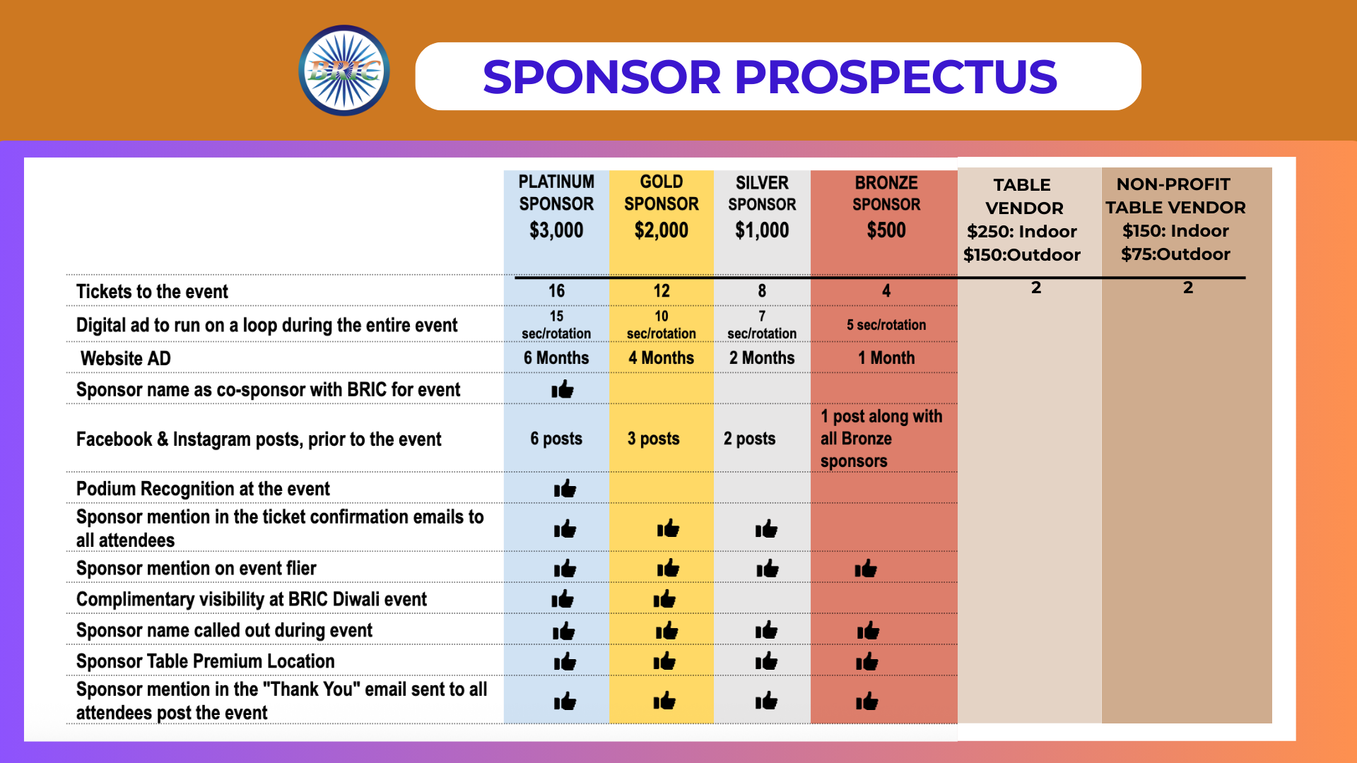 Event Sponsorships and Ads start at as little as $100 and are seen by thousands from the South Asian diaspora.
